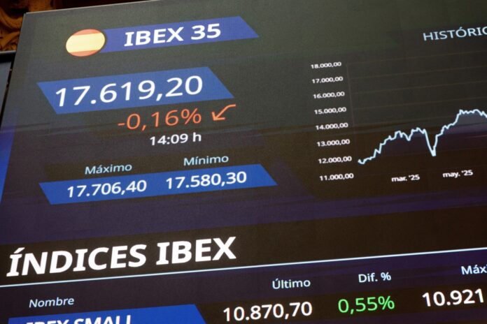El Ibex 35 ha cerrado la primera jornada de la semana con una caída del 0,26%, pese a que durante la sesión había registrado descensos superiores al 1%, por lo que el índice marcaba un nivel de 17.665,3 puntos al terminar la negociación.