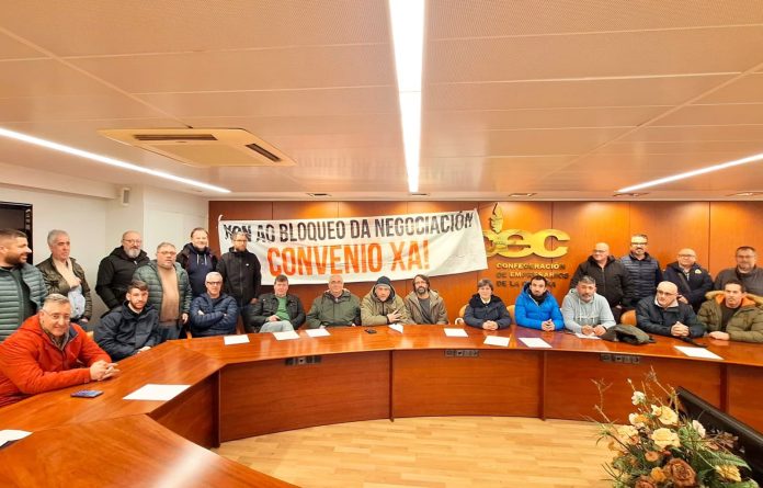 Delegados de la CIG en el transporte de viajeros por carretera en la provincia de A Coruña, así como representantes de la central nacionalista, entre ellos su secretario xeral, Paulo Carril, han iniciado un cierre en la sede de la patronal de empresarios de A Coruña (CEC) «en protesta por el bloqueo a la negociación colectiva y la falta de reunión de la mediación».
