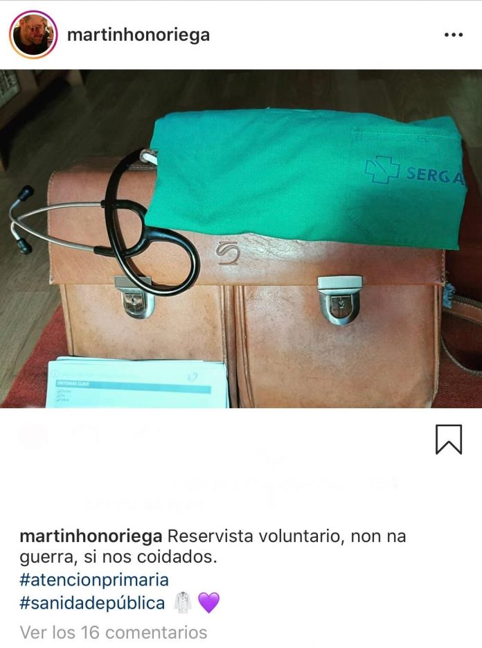 En su página personal de Instagram, el exalcalde de Santiago y de Teo, que se dedicó de forma plena a la representación institucional en los últimos doce años, ha publicado este domingo una fotografía en la que se presenta como «reservista voluntario, no en la guerra, sí en los cuidados». En ella, se ve su maletín de médico y material para la práctica de la medicina.