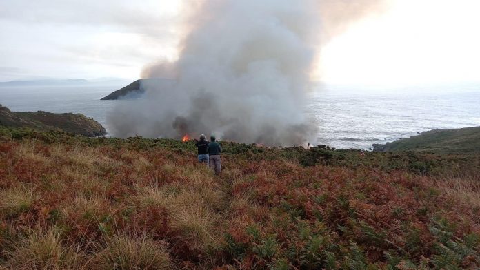 El incendio provocado por un rayo en la Illa de Ons, integrada en el Parque Nacional Marítimo Terrestre de las Illas Atlánticas, continúa activo –aunque evoluciona favorablemente– y ha arrasado, según las primeras mediciones provisionales, unas 4 hectáreas de monte raso.