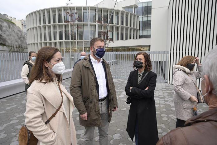 Trenor ha explicado esta mañana las tres actuaciones que se llevaron a cabo. Por una parte, la rehabilitación integral del espacio administrativo de la Xunta que se reparte entre el edificio prisma, conplanta rectangular de cinco alturas; y el edificio óvalo, de cuatro alturas, conectados por una zona de paso, y que compartirán un salón de actos.