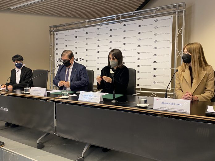 A la firma, en el rectorado coruñés, han asistido el rector de la UDC, Julio Abalde, y la conselleira de Emprego e Igualdade, María Jesús Lorenzana, que firmaron un protocolo que formaliza las relaciones institucionales entre ambas entidades.