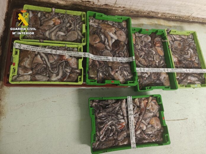 El Servicio Marítimo Provincial de la Guardia Civil de A Coruña ha llevado a cabo la incautación de 151,80 kilogramos de pulpo que estaba siendo transportado sin la documentación reglamentaria que garantice su trazabilidad y origen legal.