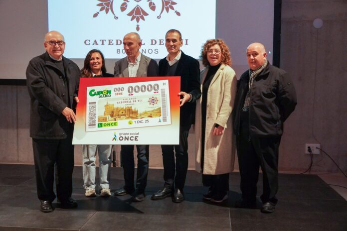 El boleto fue presentado este jueves en Tui por el alcalde, Enrique Cabaleiro, así como por el director de la ONCE en Vigo, Roberto Gaspar Conde, y el deán de la Catedral, José Diéguez Dieppa.