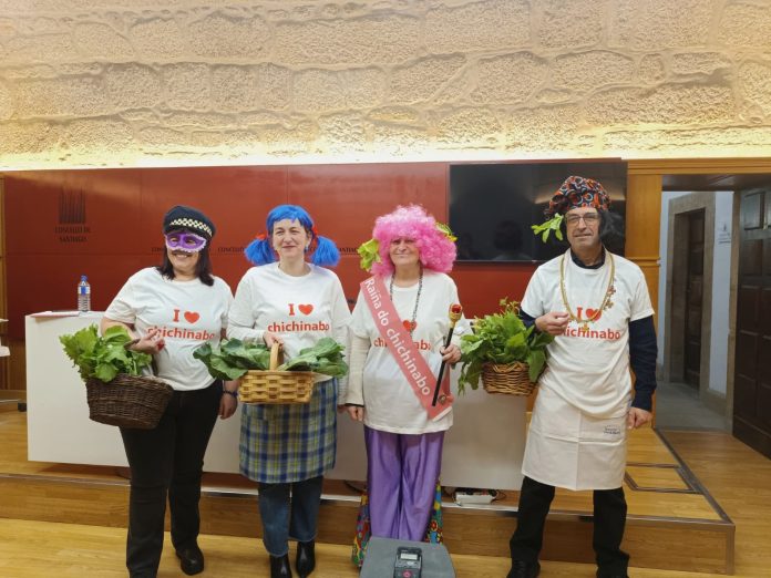 A su lado estaban los concejales del Bloque Nacionalista Galego (BNG) y miembros de su euqipo, todos ellos con una camiseta de ‘I love chichinabo’, pelucas y cestas portando dicho alimento.