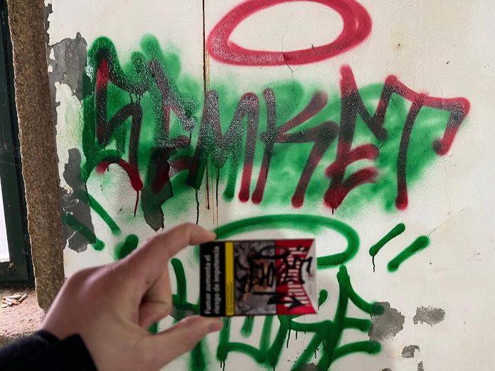 Dentro de la edificación, cuya entrada estaba forzada, observaron numerosas pintadas con diferentes firmas. Además, uno de los jóvenes «tenía manchas de pintura en la mano y en la cara».