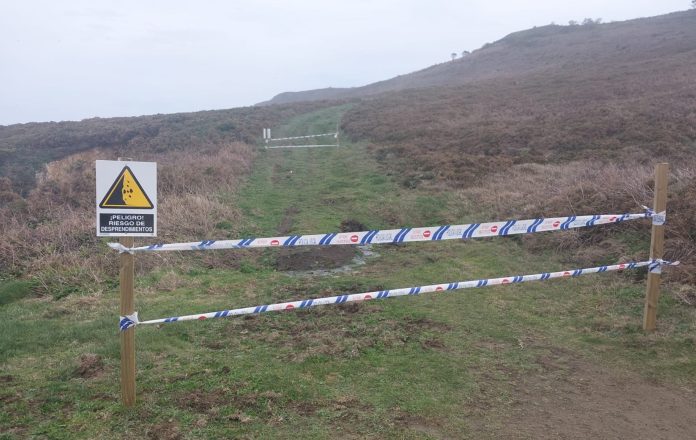 El Ayuntamiento de Valdoviño se ha visto obligado a precintar este miércoles el acceso al camino de servidumbre que conecta la Praia dos Curas con la zona de O Paraño, en el paraje conocido como A Mula, después de que se confirmase un desprendimiento de tierras en la zona.