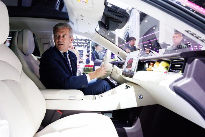 El presidente de la Xunta, Alfonso Rueda, acompañado por la conselleira de Economía e Industria, María Jesús Lorenzana, ha visitado el salón del automóvil Beijing Autoshow, considerado como el mayor salón de estas características del mundo con una superficie de 380.000 metros cuadrados repartidos en dos recintos.