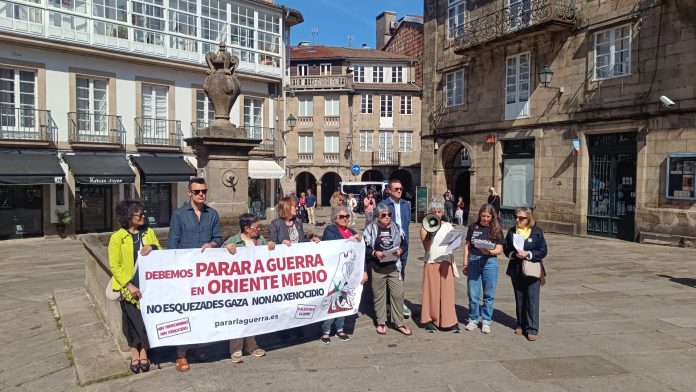 Manifestantes gallegos se han concentrado este sábado en múltiples puntos de la Comunidad para reclamar el fin de la guerra en Oriente Medio, con el foco en Gaza. «Somos el pueblo y no nos callarán», han proclamado.