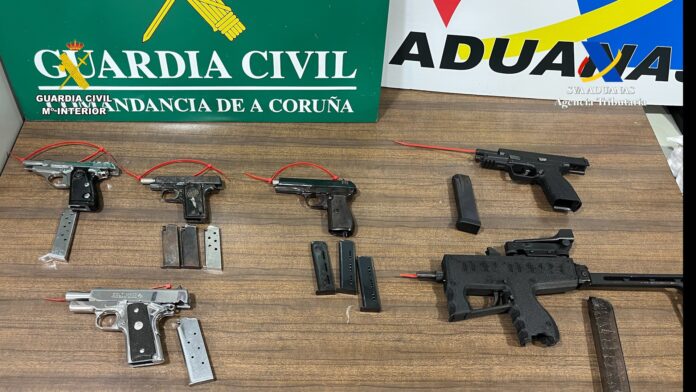 Según han detallado en un comunicado de prensa, uno de los investigados y «cabecillas» del grupo ferrolano era el encargado de abastecer a la organización criminal mediante un ‘piso guardería’ en Narón. Allí se almacenaban varias armas de fuego automáticas y semiautomáticas –un subfusil automático, cinco armas cortas y munición de 9 mm fueron incautados–, además de droga y dinero en efectivo.