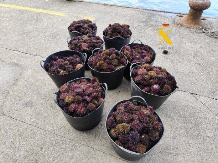 La Guardia Civil ha identificado a los responsables de un pesquero que realizaba capturas de erizo de mar en una zona no autorizada frente a la costa de la localidad de San Cibrao, en el municipio lucense de Cervo, interviniendo un total de 156 kilos de este recurso marisquero.