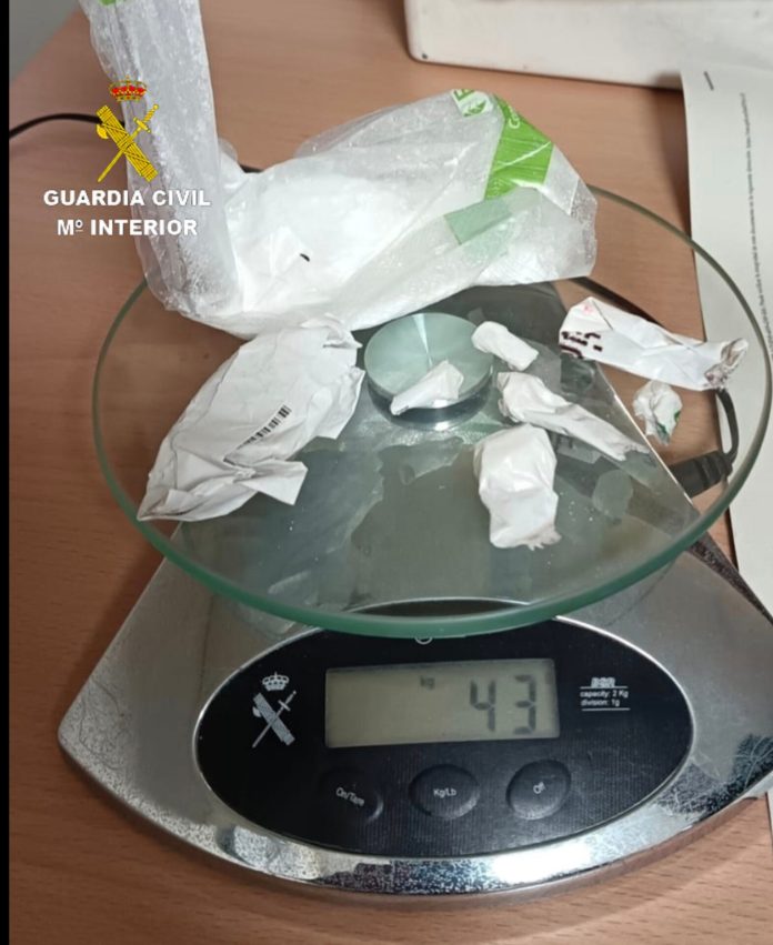 La Guardia Civil investiga a un hombre de 53 años de edad y una mujer de 26 años, ambos vecinos de Bueu (Pontevedra), como supuestos autores de un delito de tráfico de drogas, y a los que se les intervinieron 40 gramos de cocaína.